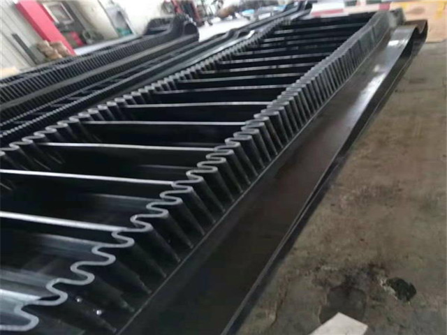 波狀擋邊輸送帶采用成槽度不大于0.03的基帶和擋邊、橫隔板(水平輸送可不要)經(jīng)兩次硫化制成。